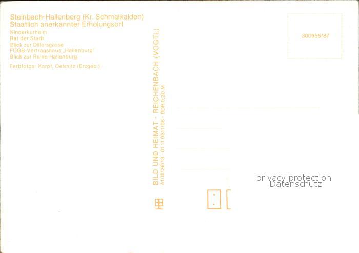 72103518 Steinbach-Hallenberg Kinderkurheim Dillergasse Ruine Hallenburg postalisch nicht gelaufen Erhaltung siehe scans KatCode: 11110016066063