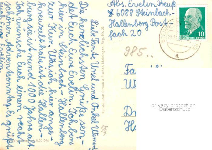 72633042 alte Postkarte Steinbach-Hallenberg Kirche Burgruine Kanzlersgrund Finkensteine Felsen postalisch gelaufen Erhaltung siehe scans [FriedD77] KatCode: 11110016066063