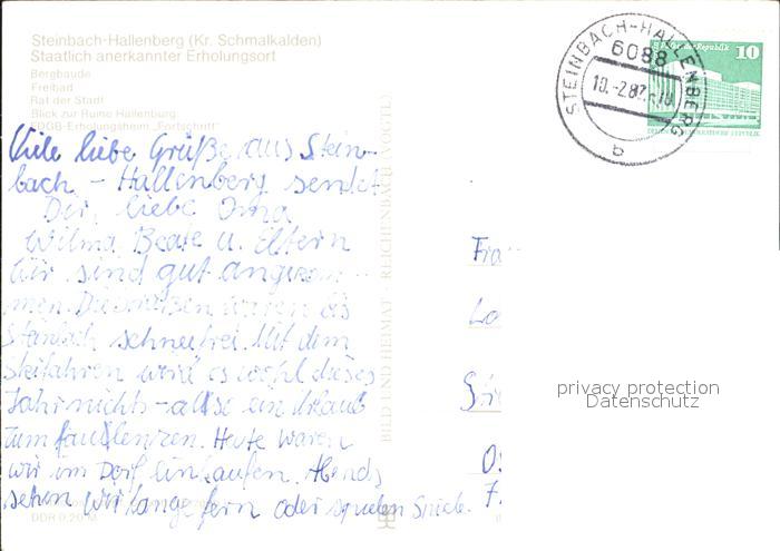 72375660 alte Postkarte Steinbach-Hallenberg Rat Der Stadt Bergbaude Freibad postalisch gelaufen Erhaltung siehe scans KatCode: 11110016066063