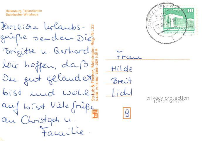 73099085 alte Postkarte Steinbach Hallenberg Wirtshaus Hallenburg postalisch gelaufen Erhaltung siehe scans [KathaD81] KatCode: 11110016066063