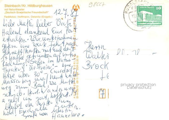 73090242 alte Postkarte Steinbach Hildburghausen Naturtheater Deutsch-Sowjetische Freundschaft postalisch gelaufen Erhaltung siehe scans [PaolaD17] KatCode: 11110016069042