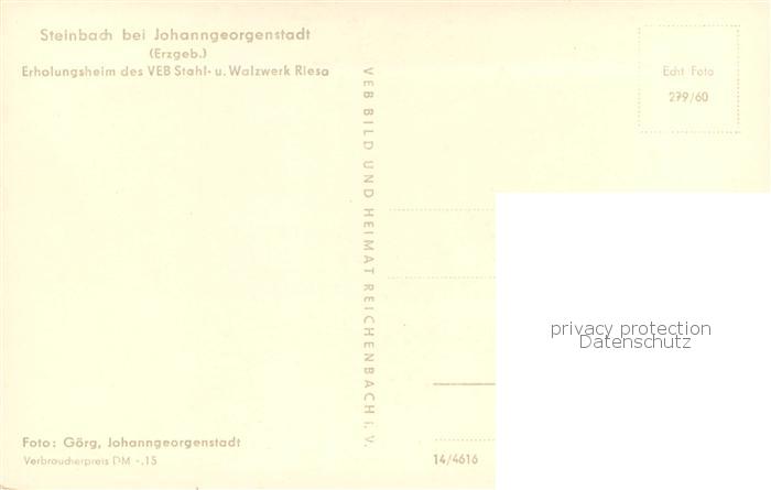 73777968 Steinbach Johanngeorgenstadt Erholungsheim des VEB Stahl- und Walzwerk Riesa postalisch nicht gelaufen Erhaltung siehe scans [FriedD77] KatCode: 11110014191180