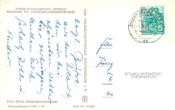 72728858 alte Postkarte Steinbach Johanngeorgenstadt FDGB Erholungsheim Wismut postalisch gelaufen Erhaltung siehe scans [FriedD77] KatCode: 11110014191180
