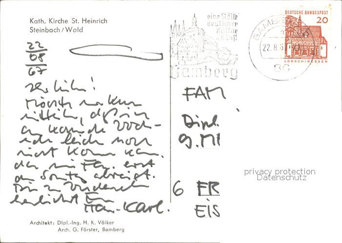 72078525 alte Postkarte Steinbach Kronach Katholische Kirche St. Heinrich postalisch gelaufen Erhaltung siehe scans KatCode: 11110009476175