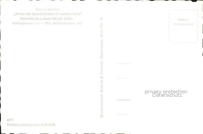 72518589 Steinbach Langenbach Naturtheater Deutsch Sowjetische Freundschaft postalisch nicht gelaufen Erhaltung siehe scans KatCode: 11110016069042