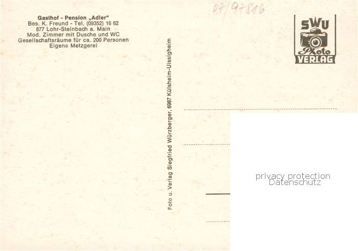 73863102 Steinbach Lohr Main Gasthof Adler Panorama Kirche postalisch nicht gelaufen Erhaltung siehe scans [WerneD78] KatCode: 11110009677155