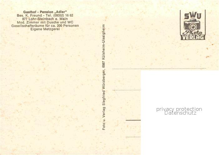 72673106 Steinbach Lohr Main Gasthof Adler postalisch nicht gelaufen Erhaltung siehe scans [AndreD76] KatCode: 11110009677155