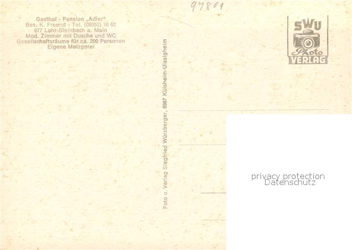 73202201 Steinbach Lohr Main Gasthof Pension Adler Uferpartie am Main Herbststimmung postalisch nicht gelaufen Erhaltung siehe scans [FriedD77] KatCode: 11110009677155