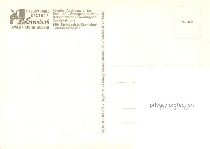 73650906 Steinbach Marktleugast Kinderparadies Gasthof Steinbach Kutschfahrten Kinderspielplatz postalisch nicht gelaufen Erhaltung siehe scans [WerneD78] KatCode: 11110009477138
