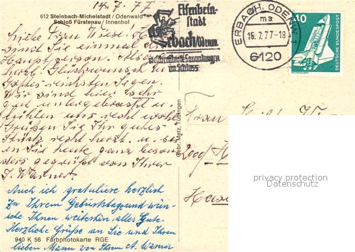 73133521 alte Postkarte Steinbach Michelstadt Schloss Fuerstenau Innenhof postalisch gelaufen Erhaltung siehe scans [NatalD47] KatCode: 11110006437011