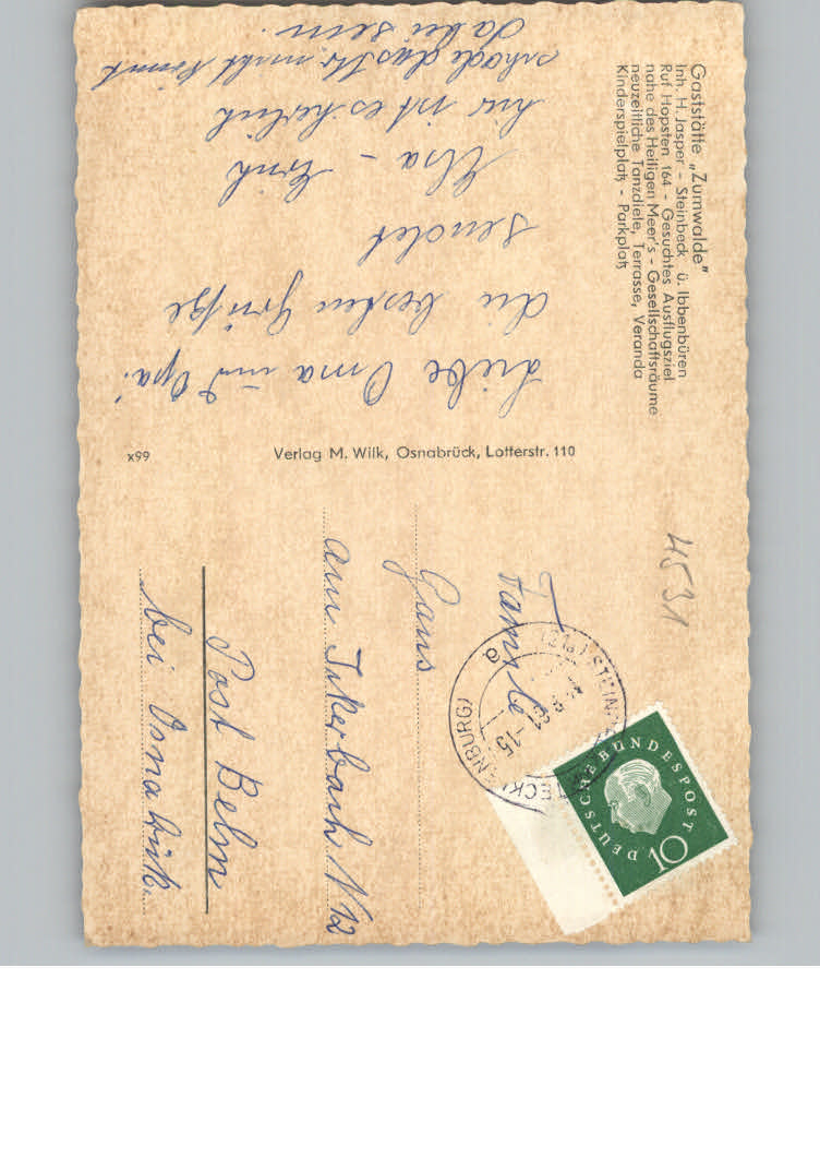 31175111 Steinbeck bbenBueren Gaststaette Zumwalde postalisch nicht gelaufen KatCode: