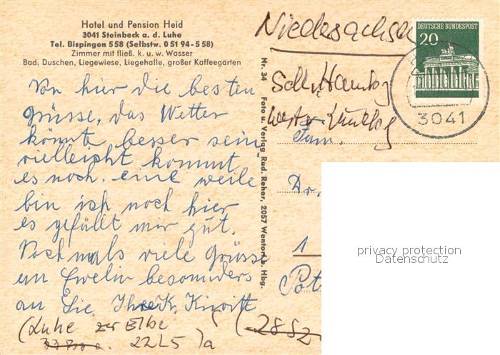 73716929 alte Postkarte Steinbeck Luhe Hotel Pension Heid Heidelandschaft postalisch gelaufen Erhaltung siehe scans [FriedD77] KatCode: 11110003358002