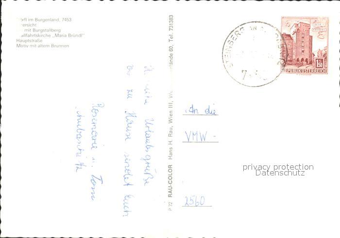 72922486 alte Postkarte Steinberg-Doerfl Burgstallberg Wallfahrtskirche Maria Bruendl Hauptstrasse postalisch gelaufen Erhaltung siehe scans [NatalD47] KatCode: 11390111010821