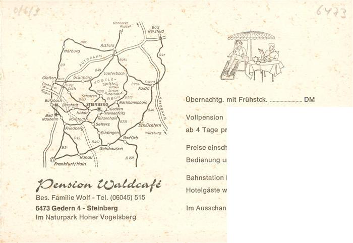 73910976 Steinberg Gedern Pension Waldcafe Terrasse postalisch nicht gelaufen Werbekarte (keine Postkarte) Erhaltung siehe scans [FriedD77] KatCode: 11110006440009