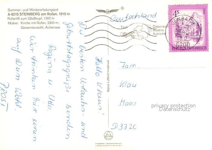 73354883 alte Postkarte Steinberg Rofan Kirche mit Rofan Panorama Achensee postalisch gelaufen Erhaltung siehe scans [WerneD78] KatCode: 11390335070929