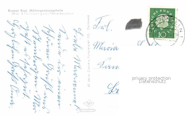 72792468 alte Postkarte Steinbergen Bremer Evangelische Muettergenesungsheim postalisch gelaufen Erhaltung siehe scans [AndreD76] KatCode: 11110003257031