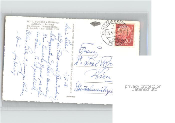 71850866 alte Postkarte Steinbergen Hotel Schloss Arensburg postalisch gelaufen Erhaltung siehe scans KatCode: 11110003257031