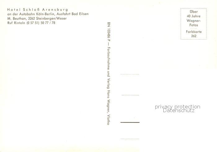 73767169 Steinbergen Hotel Schloss Arensburg postalisch nicht gelaufen Erhaltung siehe scans [FriedD77] KatCode: 11110003257031