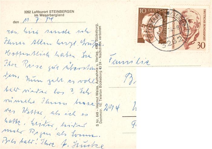 73875013 alte Postkarte Steinbergen Kneippkurhaus Arensburg Panorama Muettergenesungsheim Schaumburg postalisch gelaufen Erhaltung siehe scans [FriedD77] KatCode: 11110003257031