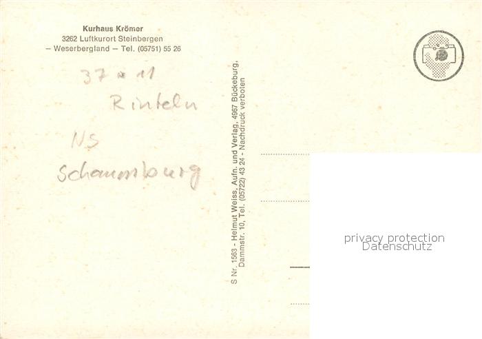 73641924 Steinbergen Kurhaus Kroemer Park Gaststube postalisch nicht gelaufen Erhaltung siehe scans [WerneD78] KatCode: 11110003257031
