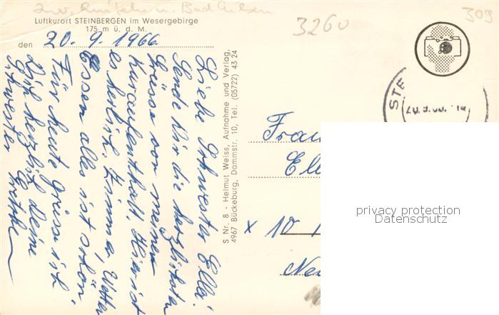 73755621 alte Postkarte Steinbergen Panorama Luftkurort im Wesergebirge Pensionshaeuser Kneippkurhaus Aufstieg zum Klippenturm postalisch gelaufen Erhaltung siehe scans [FriedD77] KatCode: 11110003257031