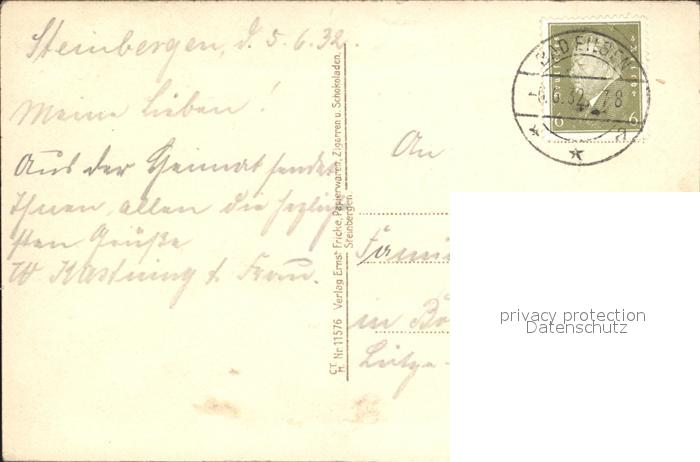 72146061 alte Postkarte Steinbergen Schloss Arensburg postalisch gelaufen Erhaltung siehe scans KatCode: 11110003257031