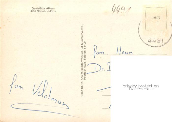73724214 alte Postkarte Steinbild Gaststaette Alberts Ems Bruecke postalisch gelaufen Erhaltung siehe scans [LiesaD40] KatCode: 11110003454025