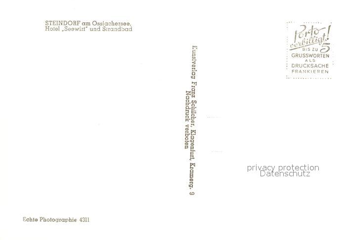 73097213 Steindorf Ossiacher See Hotel Seewirt Strandbad postalisch nicht gelaufen Erhaltung siehe scans [KathaD81] KatCode: 11390212021009