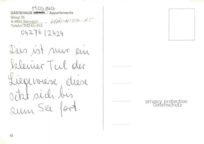74100749 Steindorf Ossiacher See Kaernten AT Gaestehaus Mosing Appartements postalisch nicht gelaufen Erhaltung siehe scans [FriedD77] KatCode: 11390212021009