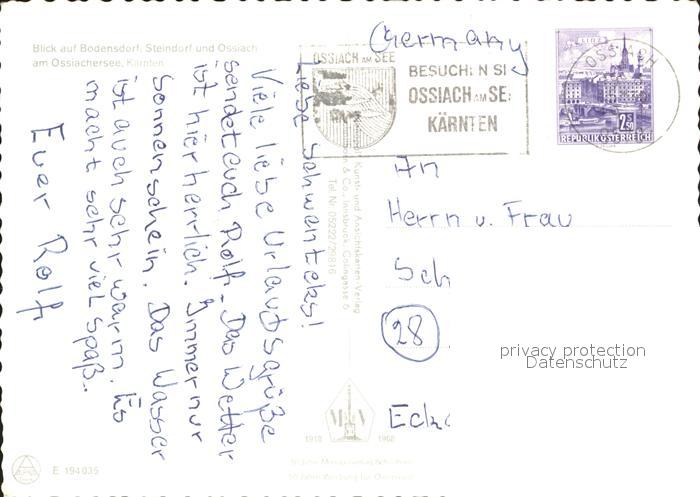 72371078 alte Postkarte Steindorf Ossiacher See Ossiacher See Bodensdorf Ossiach postalisch gelaufen Erhaltung siehe scans KatCode: 11390212021009