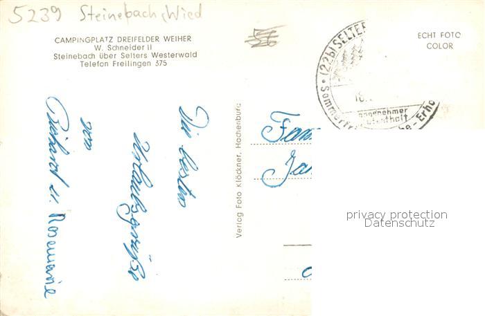 73755155 alte Postkarte Steinebach Wied Campingplatz Dreifelder Weiher postalisch gelaufen Erhaltung siehe scans [LiesaD40] KatCode: 11110007143294