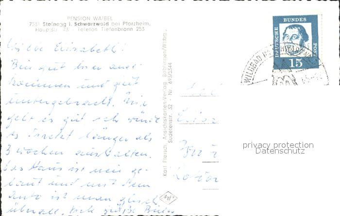 41995744 alte Postkarte Steinegg Enzkreis Pension Waibel postalisch gelaufen Erhaltung siehe scans KatCode: 11110008236044