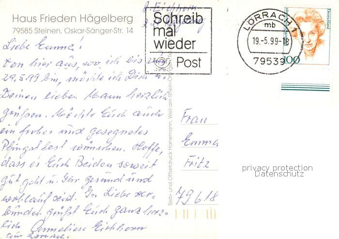 73030522 alte Postkarte Steinen Wiesental Haus Frieden Haegelberg postalisch gelaufen Erhaltung siehe scans [KathaD81] KatCode: 11110008336084