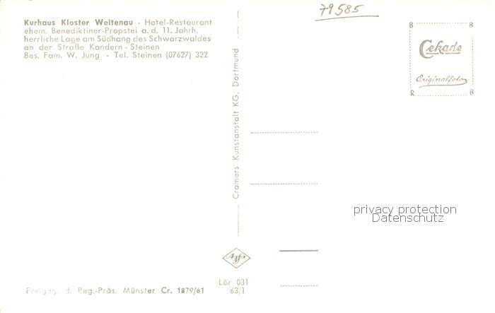 73763370 Steinen Wiesental Kurhaus Kloster Weitenau Hotel Rest. postalisch nicht gelaufen Erhaltung siehe scans [LiesaD40] KatCode: 11110008336084