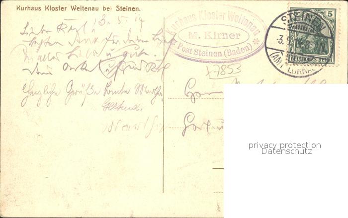 41790903 alte Postkarte Steinen Wiesental Kurhaus Kloster Weitenau postalisch gelaufen Erhaltung siehe scans KatCode: 11110008336084