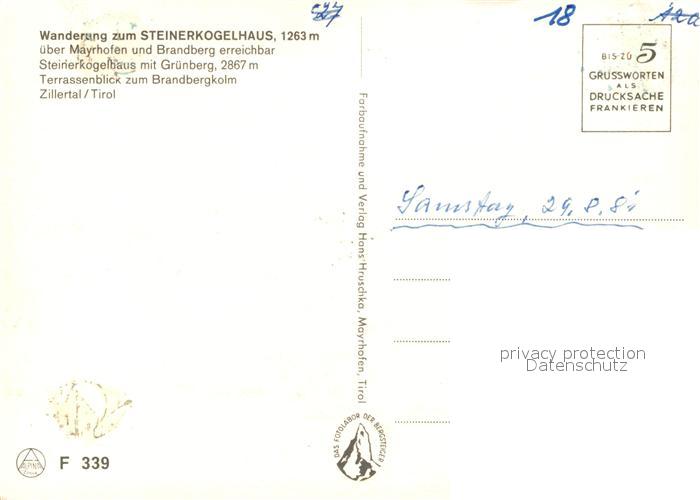 73328689 Steinerkogelhaus Gruenberg Brandbergkolm postalisch nicht gelaufen Erhaltung siehe scans [KathaD81] KatCode: 11390335070903