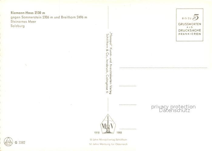 73264669 Steinernes Meer Riemann Haus Sommerstein Breithorn postalisch nicht gelaufen Erhaltung siehe scans [KathaD81] KatCode: 11390
