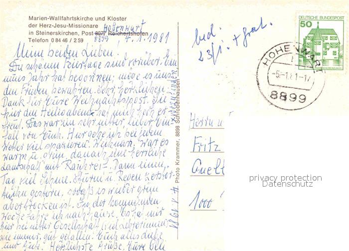 72853817 alte Postkarte Steinerskirchen Marien-Wallfahrtskirche Kloster postalisch gelaufen Erhaltung siehe scans [NatalD47] KatCode: 11110009186128