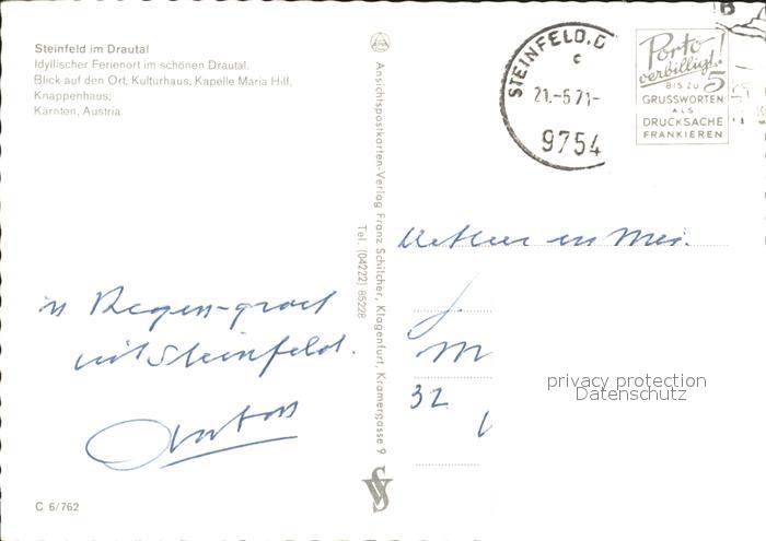 72297220 alte Postkarte Steinfeld Kaernten Kapelle Maria Hilf Kulturhaus Knappenhaus postalisch gelaufen Erhaltung siehe scans KatCode: 11390212020637