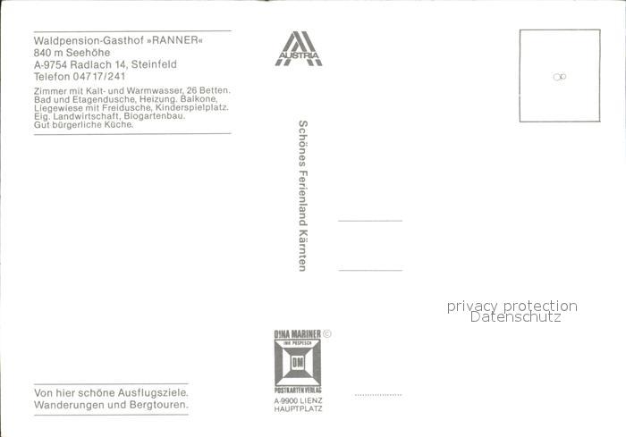 72240048 Steinfeld Kaernten Waldpension Ranner postalisch nicht gelaufen Erhaltung siehe scans KatCode: 11390212020637