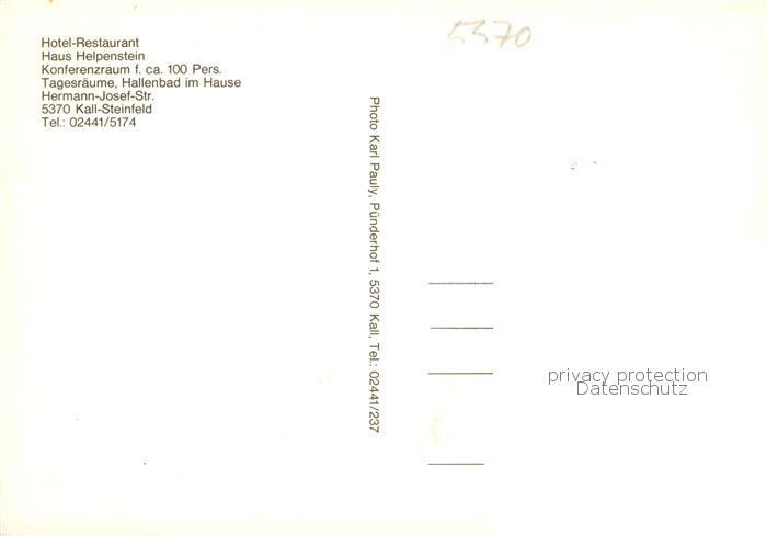 73867385 Steinfeld Kall Hotel Haus Helpenstein Restaurant Fremdenzimmer postalisch nicht gelaufen Erhaltung siehe scans [FriedD77] KatCode: 11110005366024