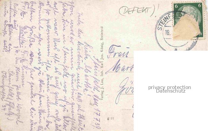 74055323 alte Postkarte Steinfeld Pfalz Ansicht mit Kirche Hauptstrasse Pfarrhaus postalisch gelaufen Erhaltung siehe scans [FriedD77] KatCode: 11110007337076