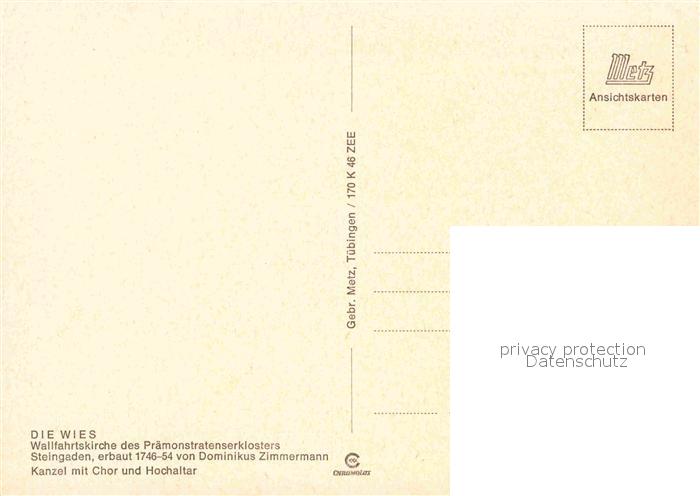 72858435 Steingaden Allgaeu Wallfahrtskirche Die Wies Kanzel mit Chor und Hochaltar postalisch nicht gelaufen Erhaltung siehe scans [WerneD78] KatCode: 11110009780140