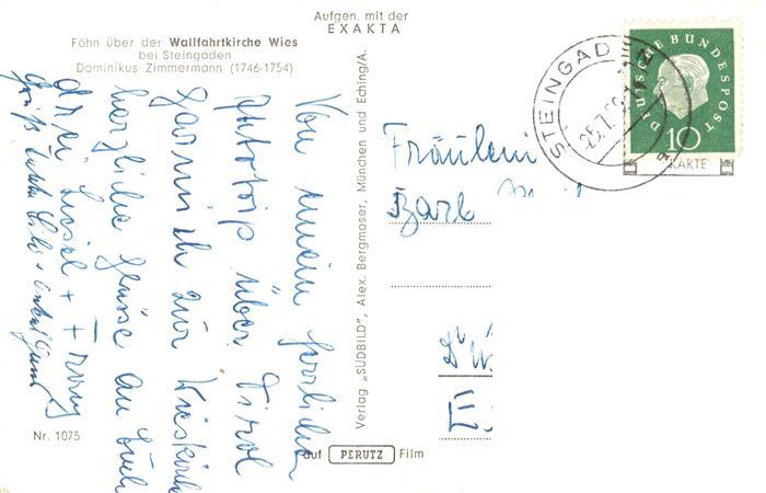 73907335 alte Postkarte Steingaden Allgaeu Wallfahrtskirche Wies Fliegeraufnahme postalisch gelaufen Erhaltung siehe scans [WerneD78] KatCode: 11110009780140