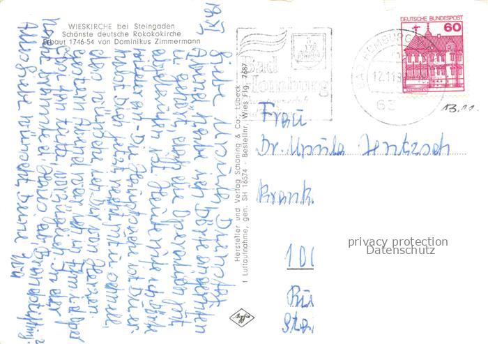 74043042 alte Postkarte Steingaden Allgaeu Wieskirche Fliegeraufnahme postalisch gelaufen Erhaltung siehe scans [WerneD78] KatCode: 11110009780140