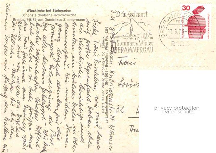 72698994 alte Postkarte Steingaden Allgaeu Wieskirche postalisch gelaufen Erhaltung siehe scans [KathaD79] KatCode: 11110009780140