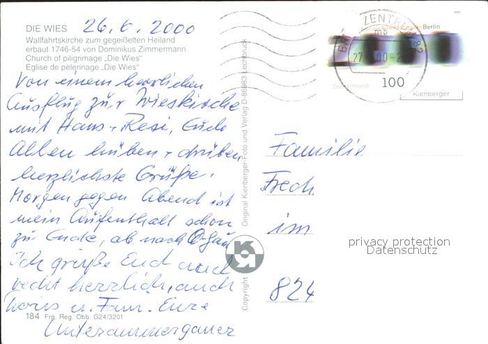 72262025 alte Postkarte Steingaden Oberbayern Fliegeraufnahme Die Wies Wallfahrtskirche postalisch gelaufen Erhaltung siehe scans KatCode: 11110009190154