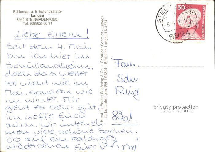 72598515 alte Postkarte Steingaden Oberbayern Fliegeraufnahme Erholungsstaette Langau postalisch gelaufen Erhaltung siehe scans [LiesaD40] KatCode: 11110009190154