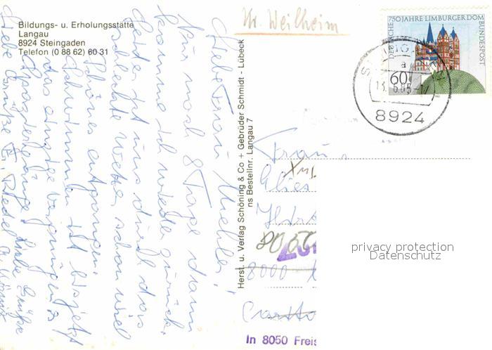 72790571 alte Postkarte Steingaden Oberbayern Langau Bildungs- und Erholungsstaette postalisch gelaufen Erhaltung siehe scans [LiesaD40] KatCode: 11110009190154