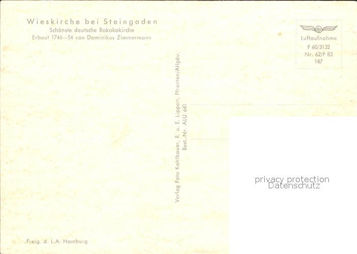 72568168 Steingaden Oberbayern Wieskirche Deutsche Rokokokirche postalisch nicht gelaufen Erhaltung siehe scans [AntonD74] KatCode: 11110009190154